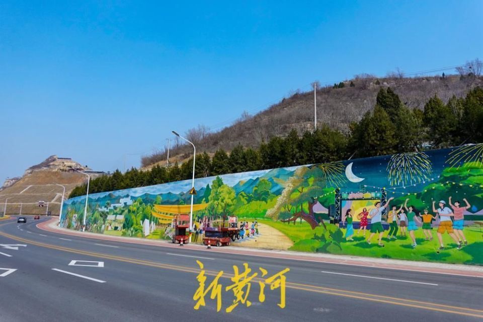 3月21日,记者在济南港九路燕棚水库东侧看到,山体挡墙上一幅以乡村振兴为主题的巨型彩色壁画惊艳亮相,昔日灰秃秃的防护墙如今变身“艺术长廊”,成为道路沿线一道亮丽的风景线。