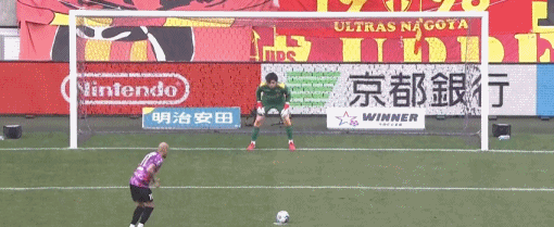 点球大战京都不死鸟5-4名古屋鲸鱼,总分6-5胜,中山克广失点