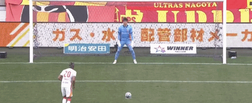 第19分钟,甲田英将传中,球直接转进球门,名古屋鲸鱼1-0京都不死鸟