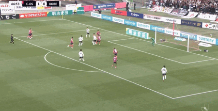 第67分钟,日高光挥禁区内劲射破门扳平比分,神户胜利船1-1