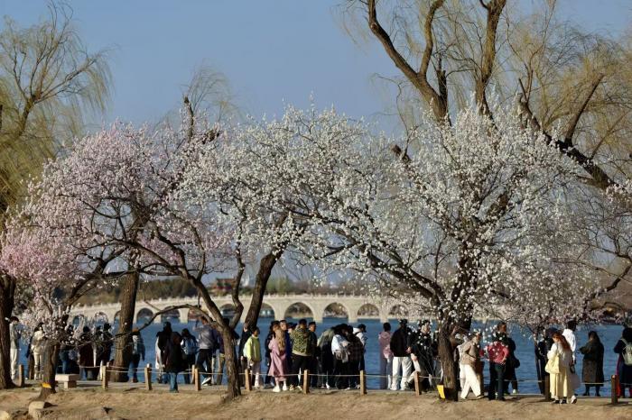 随着气温稳步回升,颐和园春日花事将接连绽放。山桃花期过后,碧桃、西府海棠等花卉将陆续开放,赏花期可延续至4月中下旬,持续为市民带来春日游园体验。