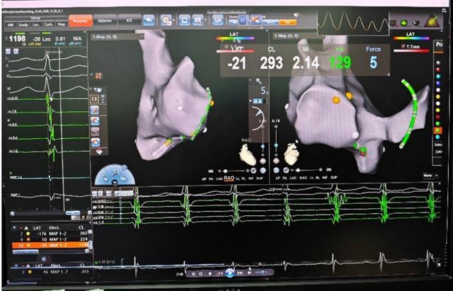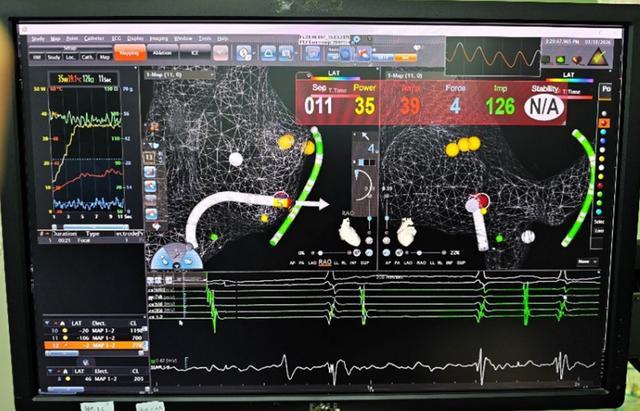 在心腔内,无需X射线辅助,团队迅速建立三维心腔模型,精准锁定并成功消融引发心动过速的异常病灶。整台手术历时不到一小时顺利收官,全程无放射线暴露,心律失常得以根治,胎儿安全也得到了最大程度的保障。