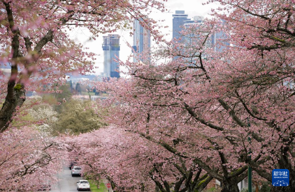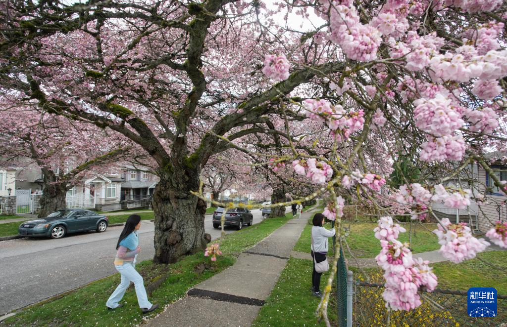 这是3月20日在加拿大温哥华拍摄的盛开的樱花。