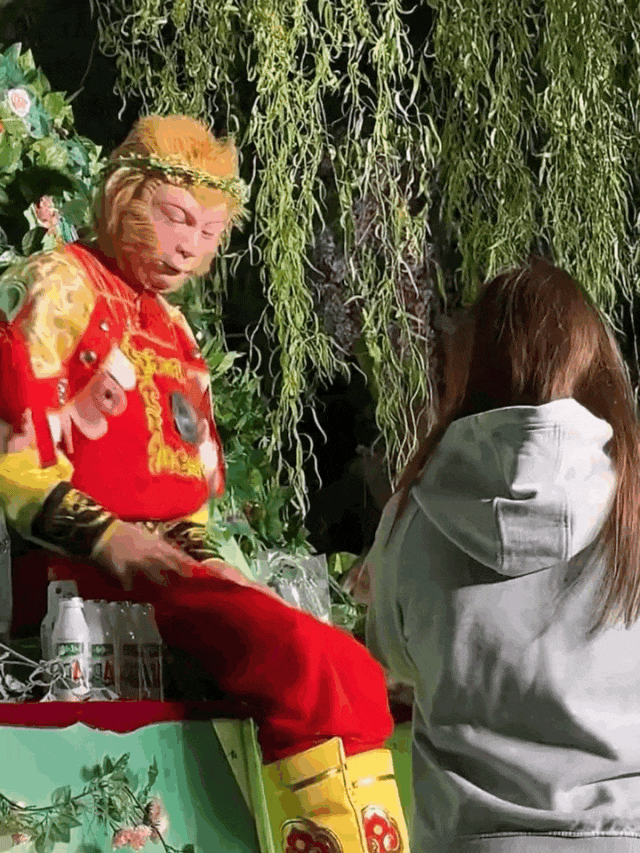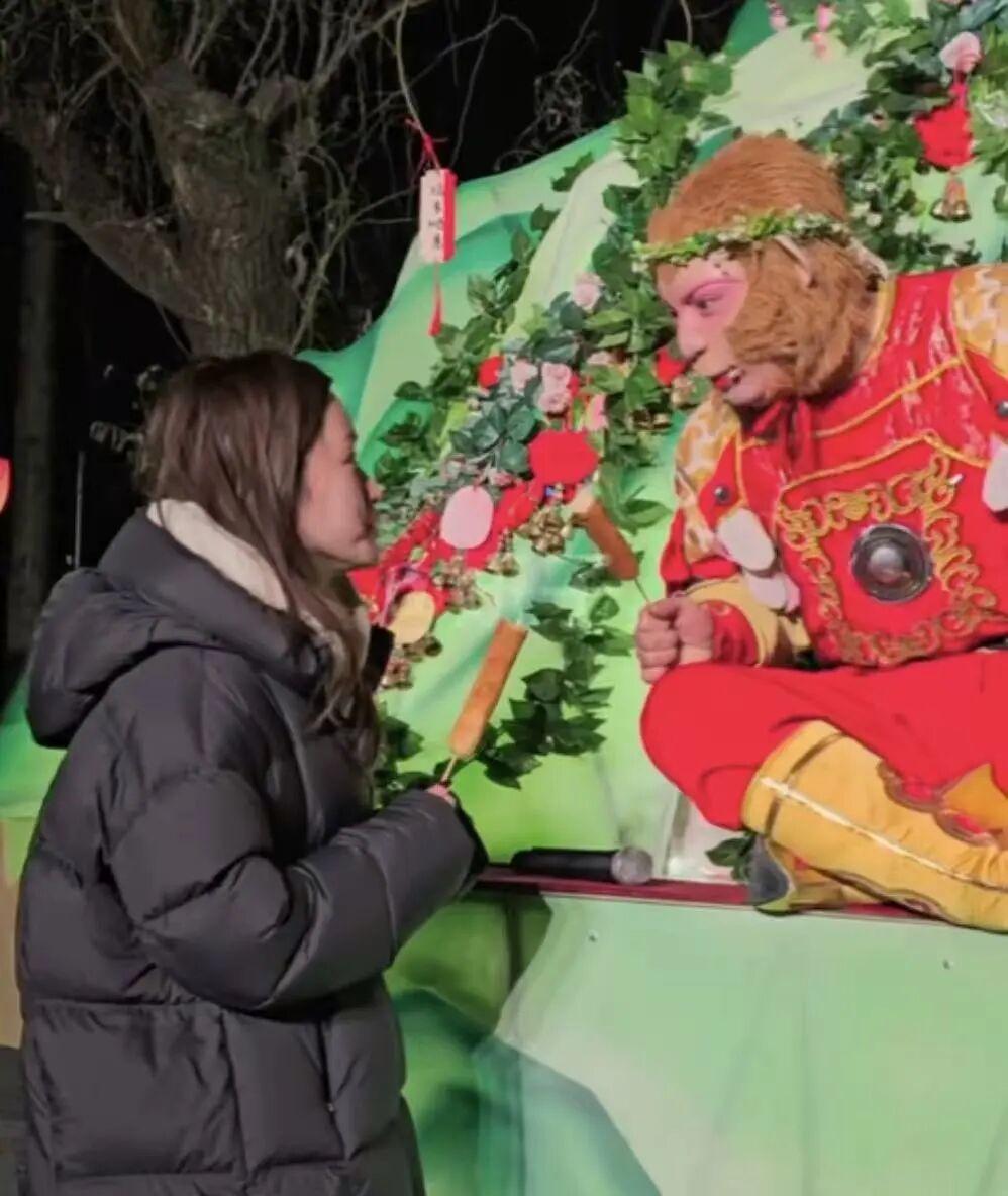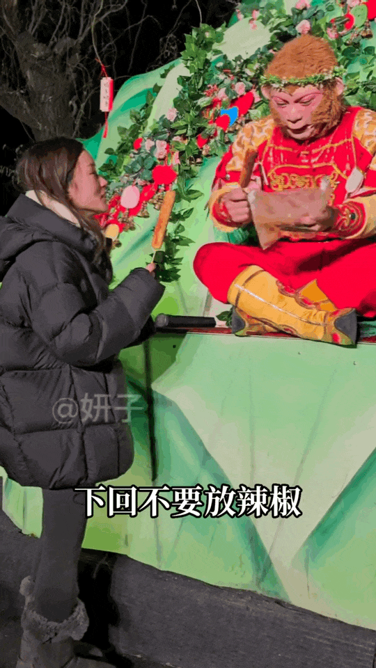 有位小姐姐兴高采烈地为猴哥带来“唐僧肉”。