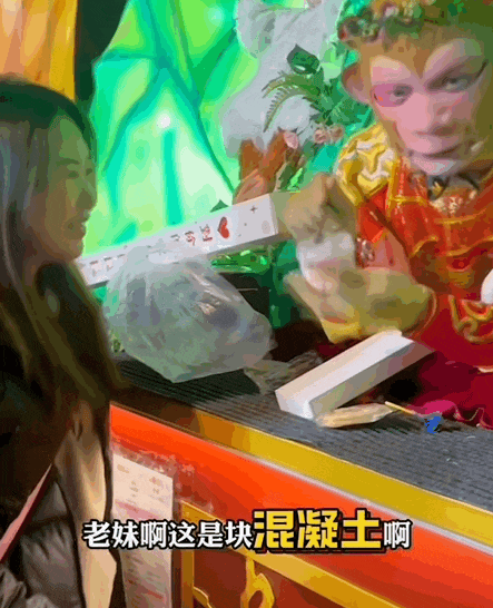 刚打开,用勺子戳了下就调侃:“这是混凝土啊。”