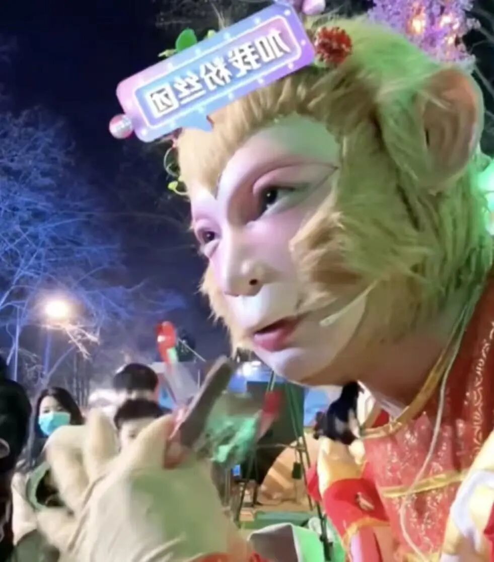 最初,雪饼猴其实是长春动植物园「逐梦西游」主题区里一个普通的NPC。