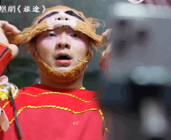 穿上孙悟空的演出服。