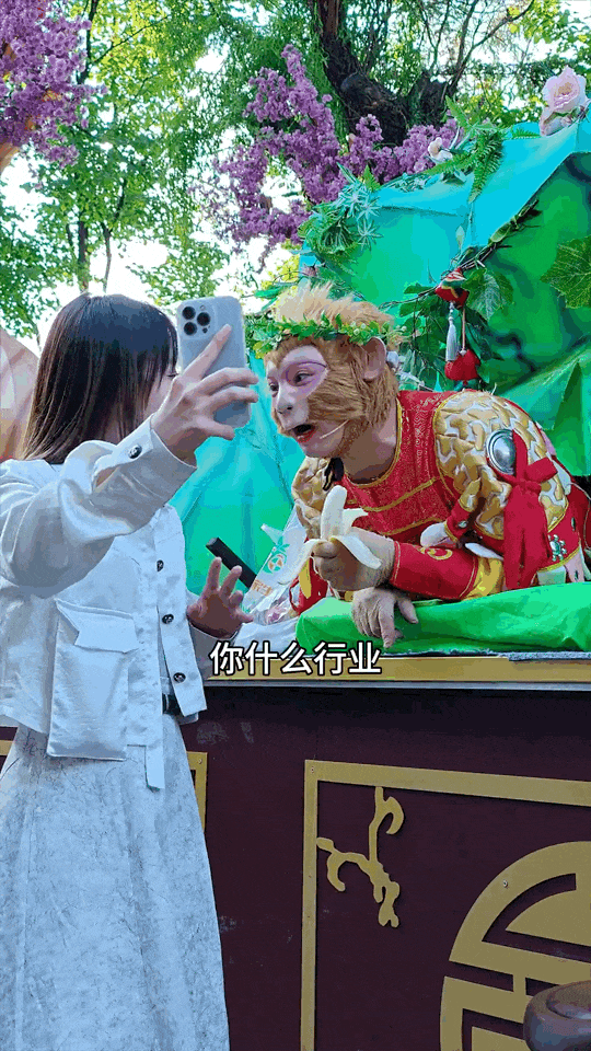 一边提供情绪价值,一边不停跟游客接话。