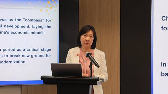 许利平和马小芳教授围绕“十五五”规划与中国—东盟合作进行专题分享,以具体数据、图表阐释中国经济发展、科技创新、产业投资、双向投资、全球价值链与“一带一路”建设等方面成就以及中国未来聚焦高质量发展趋势、路径和目标,强调“十五五”规划出台于中国推进现代化建设关键阶段,兼具承前启后、引领发展、务实高效、以人为本四大特征,着力构建经济发展、创新驱动、民生福祉、绿色低碳、安全保障五大体系,将为中国与东盟带来数字、绿色、蓝色、旅游等经济新机遇,也为共建“一带一路”带来新动能。