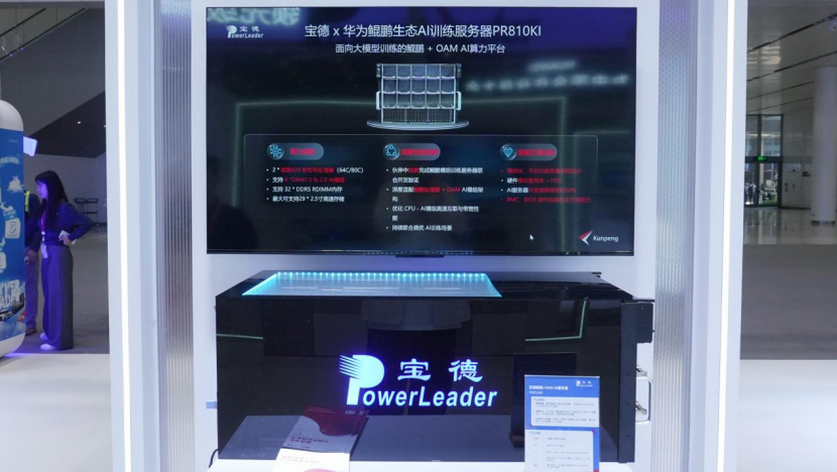 就算力基础设施而言,比如AI训练对于基础设施稳定可靠性的高要求只能说是“起点”,随着模型参数增长,还要应对内存瓶颈与海量存储的挑战。面对激增的推理需求,从“可用”到“好用”如何保证性价比?在应用落地阶段,又如何做到兼顾单一场景以及对千行百业的差异化需求适配?还有发展绿色算力、降本降耗......在华为中国合作伙伴大会上,宝德揭晓了一些最新的解题思路,在展区中亮出了数款围绕鲲鹏与昇腾生态自研的重磅产品,覆盖了从通用计算到AI推理、从海量存储到绿色液冷的主流应用场景。