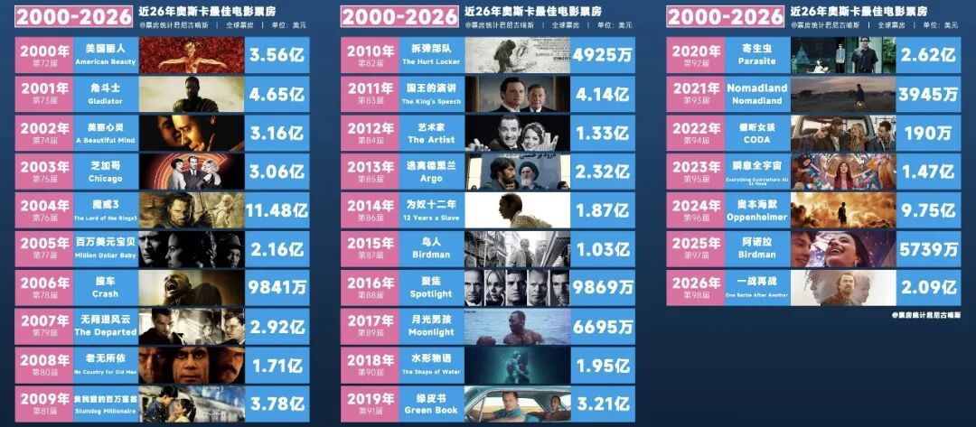 从传记片《奥本海默》、聚焦边缘群体的《阿诺拉》,到更倾向于意识形态表达的《一战再战》,获奖影片越来越倾向于小众表达和作者风格。这些作品当然有其艺术价值,但它们更像是行业精英阶级的自我狂欢。标榜关注少数群体固然值得尊重,却始终带着一种俯瞰众生的傲慢,也逐渐脱离了大众市场的审美趣味。回顾这几年的获奖作品,真正能在口碑和票房上实现双赢的,恐怕也只有《奥本海默》一部,这还得益于诺兰的号召力和豪华的演员阵容。