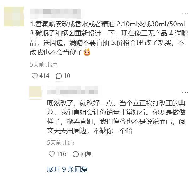 这一幕极具戏剧性,也折射出新生的二次元香氛市场的微妙处境:在出圈事件后,不少消费者的防御心理已经被拉到了最高值。即便如此,评论区里还是出现了一丝耐人寻味的风向:“虽然你的死线滑跪很丢人,但至少拉下去改了,还是听劝的。”