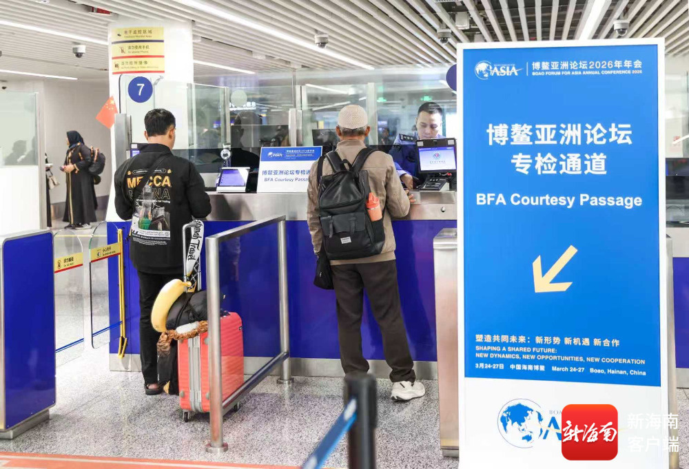 海口美兰、琼海博鳌、三亚凤凰三大国际机场是此次年会重点出入境口岸,自3月22日起陆续迎来与会嘉宾入境高峰。为确保年会期间口岸通关顺畅,海口出入境边防检查总站科学部署勤务,优化通关流程,细化保障措施,通过开设论坛年会专检通道、设置多语种引导岗、专职人员靠前保障等模式,为与会人员提供“一站式”通关服务,最大限度压缩与会人员排队等候时间。