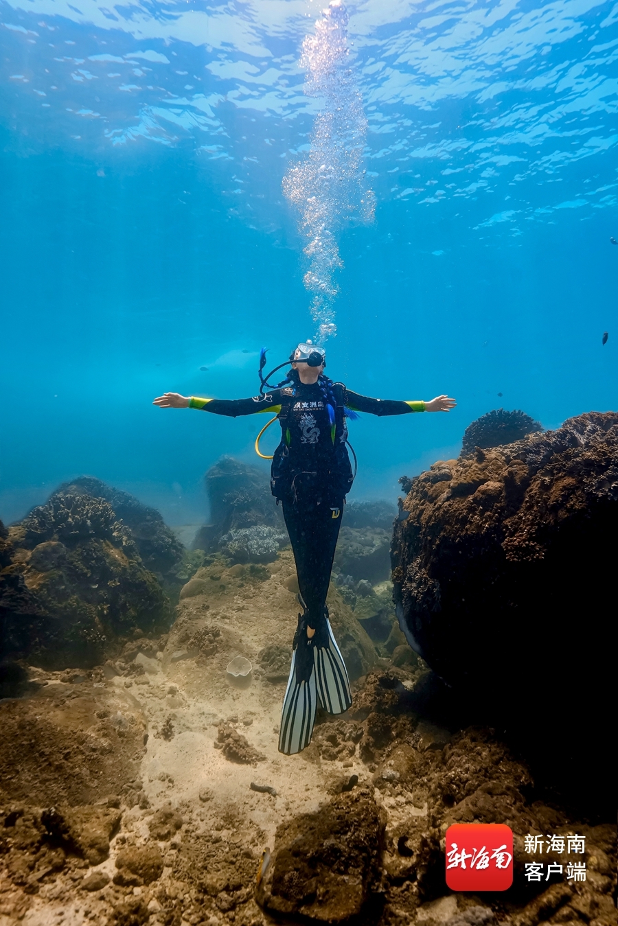 资料图:游客在三亚蜈支洲岛旅游区体验潜水。蜈支洲岛旅游区供图
