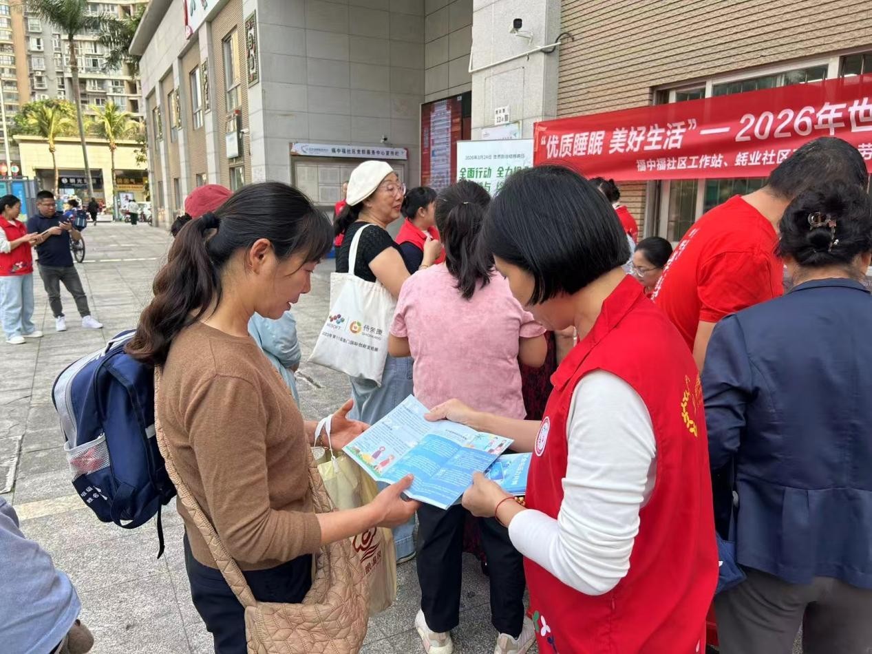 近年来我国居民睡眠障碍发生率呈上升趋势,且年轻化特征明显,睡眠健康已成为影响公众生活质量的关键因素。在第26个世界睡眠日来临之际,福中福社区、劳动社区、蚝业社区、西乡社区联合福中福社康、坪洲社康、御龙湾社康,共同举办了以“优质睡眠 美好生活”为主题的世界睡眠日宣传活动,提升公众对睡眠健康的关注度,帮助辖区居民预防和缓解因睡眠问题引发的心理困扰。