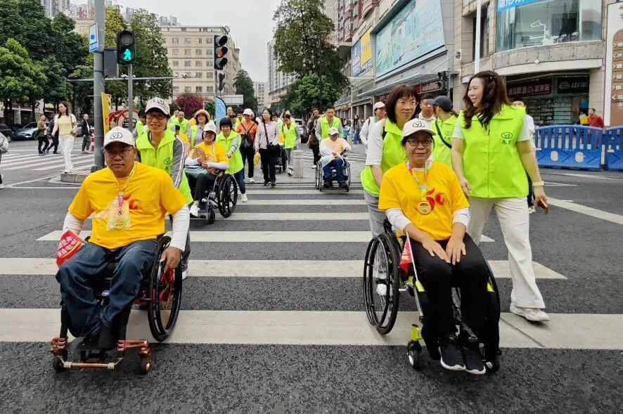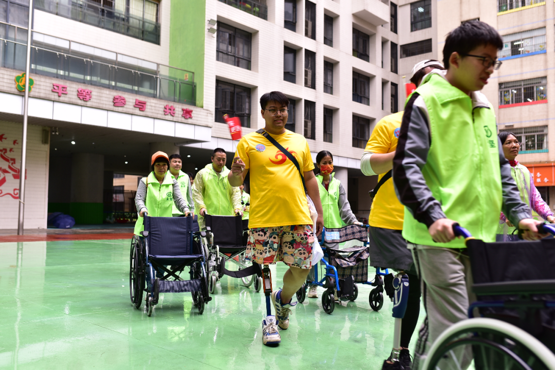 在涌动的人潮里,一支特别的队伍走得稳健而欢快。坐轮椅的、用助行器的、装着假肢的朋友,和志愿者们结对走着,有说有笑。那画面,乍一看,好像没什么特别。但仔细想想,这不就是我们理想中“一个都不能少”的社区该有的样子吗?