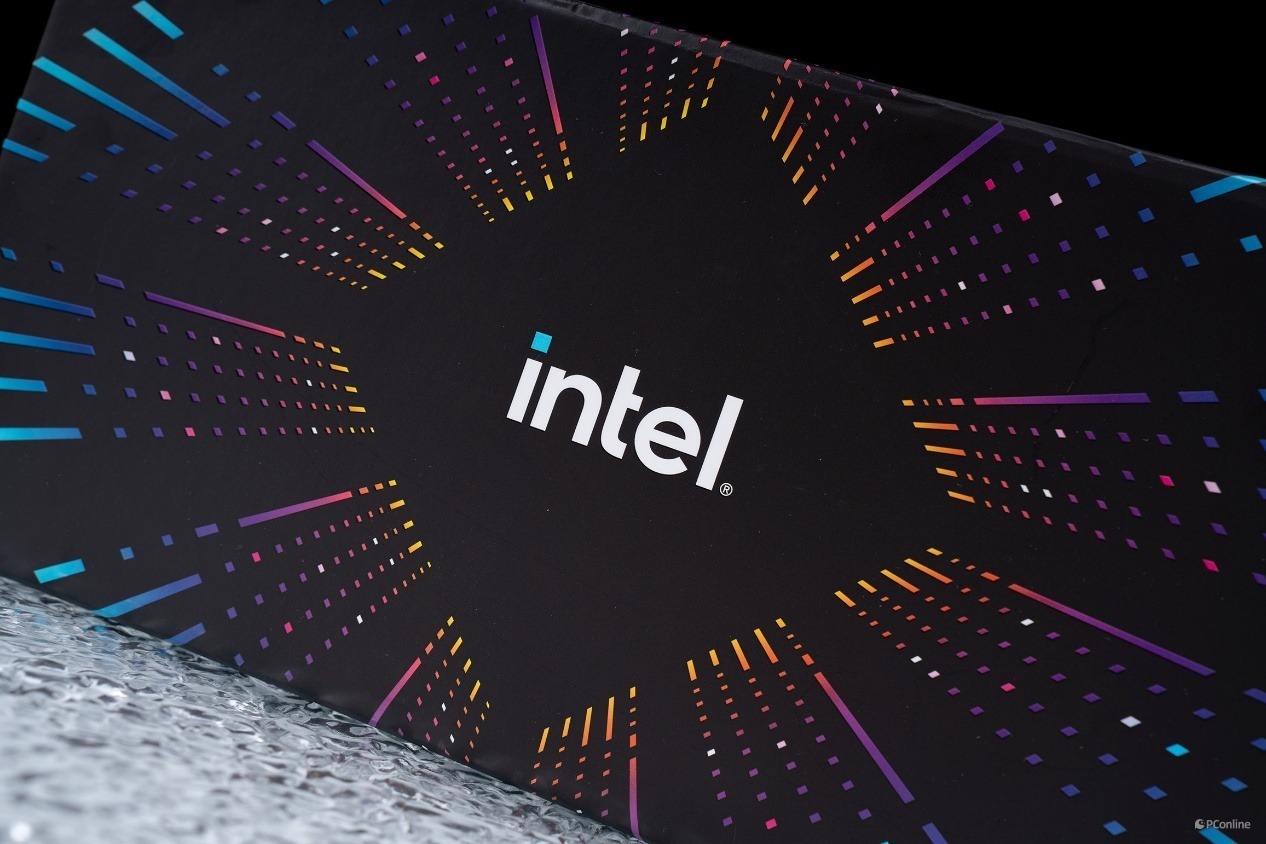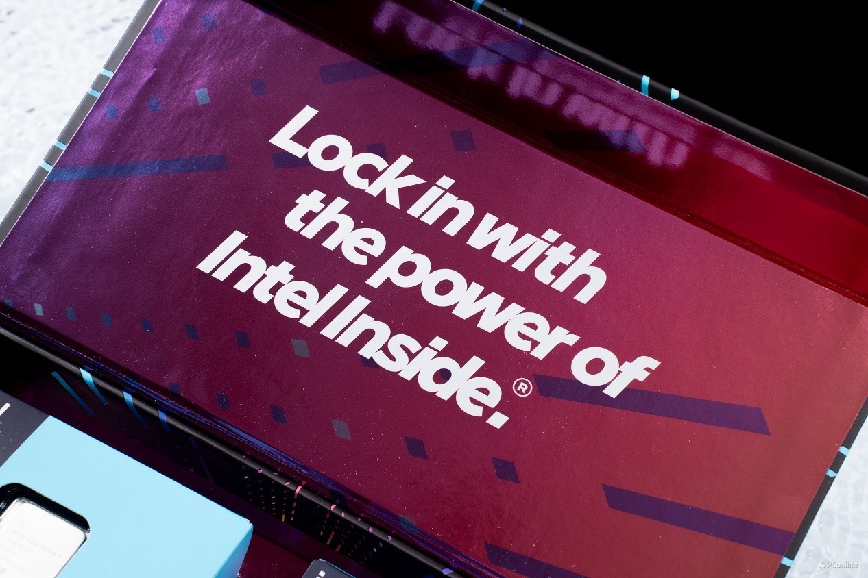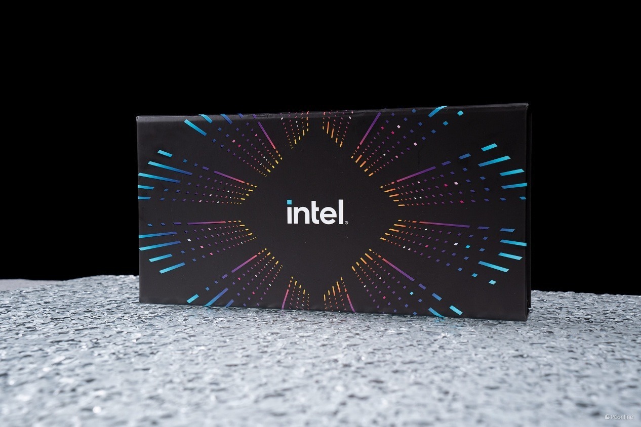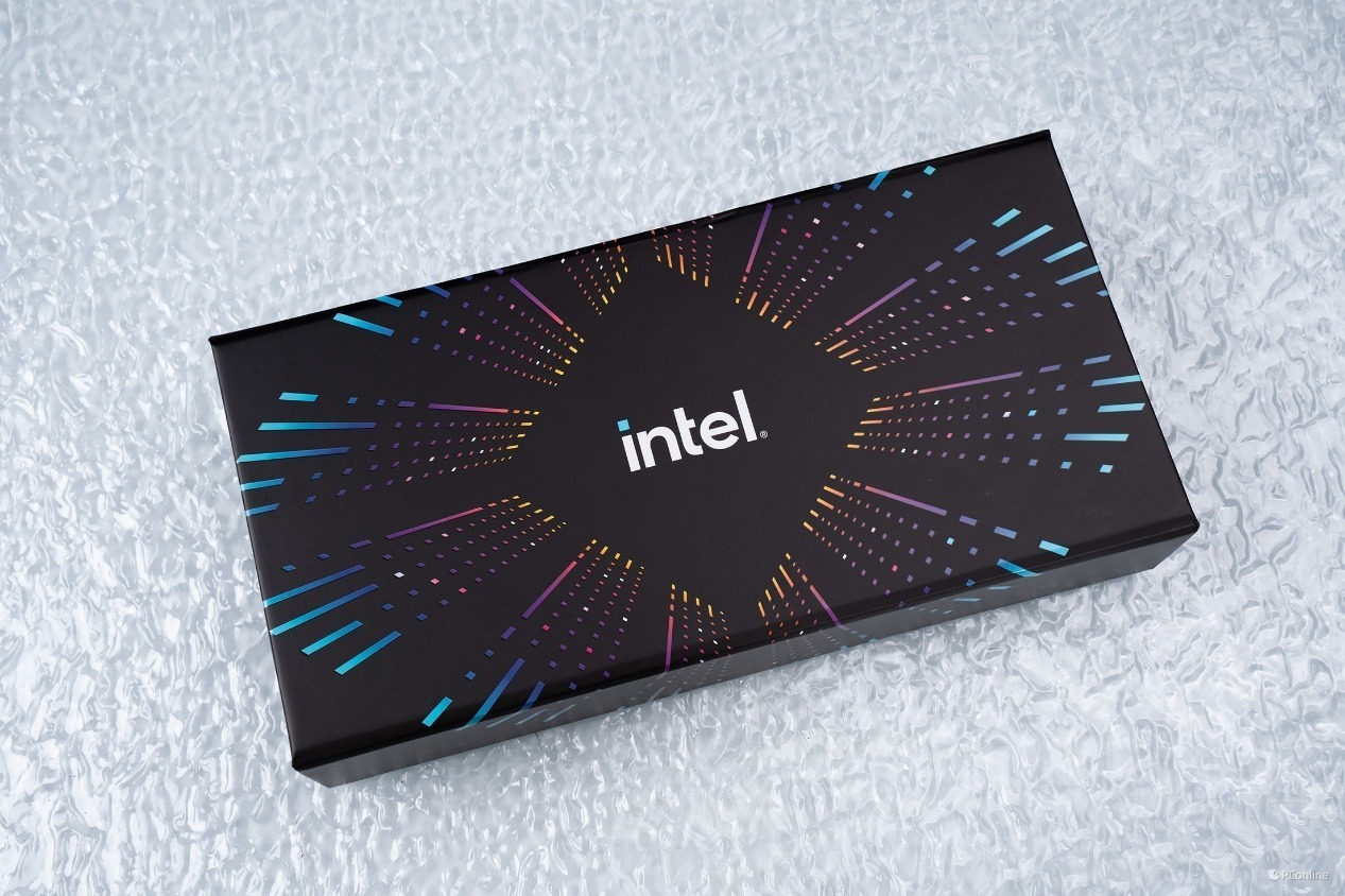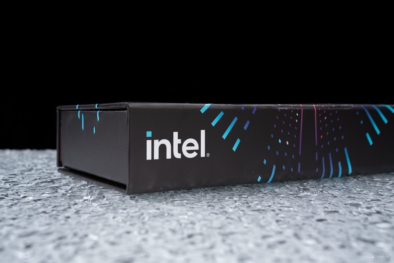 礼盒侧面延续了正面的设计风格,同样印有清晰的白色 intel 品牌标识,与正面的视觉体系保持高度统一。作为首发限定礼盒,无论是用于产品收藏,还是作为桌面硬件展示品,都有着十足的质感。