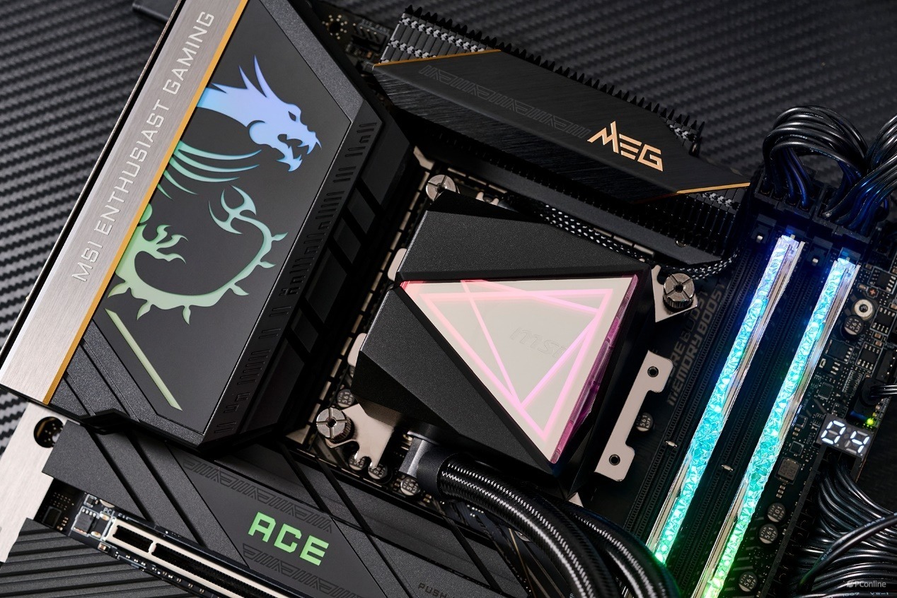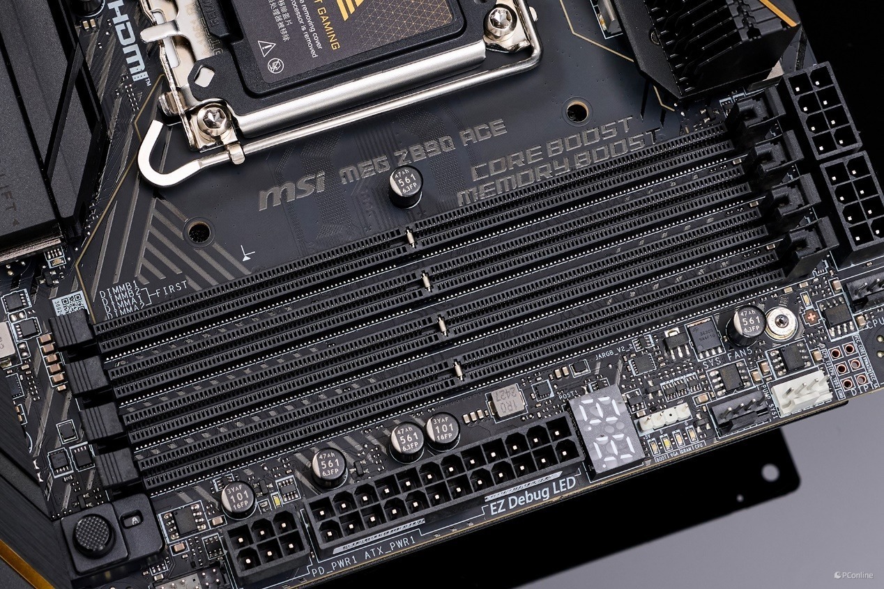 处理器介绍完毕,下面就该硬件平台登场了,既然是全新的英特尔酷睿Ultra 200S Plus系列处理器,那主板配置自然不能差。本次我们准备的是微星MEG Z890 ACE战神主板!在设计风格上就能看出微星MEG Z890 ACE战神的奢华之处,依旧是低调沉稳的黑金配色,主板的装甲上印有巨大的微星龙标,并且大面积的使用斜切线条设计,整块主板从里到外都突出一种顶级旗舰的做工细节。