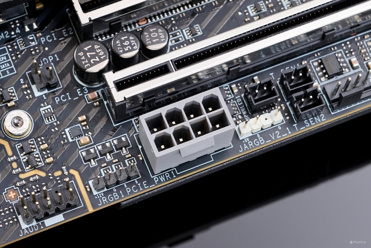 并且微星还为PCIe插槽提供了额外的供电接口,可以说是战未来的设计了,毕竟未来即将推出的RTX 50系显卡,功耗只会越来越高,拥有额外的供电接口能够让你的显卡释放更稳定。