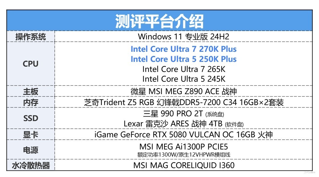 开始本次评测之前,我们照例给各位介绍一下英特尔酷睿Ultra 200S Plus对比之前的英特尔酷睿Ultra 200S有什么区别。总的来说,英特尔酷睿Ultra 200S Plus系列并非架构层面的颠覆性升级,而是英特尔针对初代 Ultra 200 系列的精准补强,从核心配置、硬件频率、技术优化到内存支持完成全维度升级,核心差异集中在四大维度,且均围绕 “提升硬核性能、降低系统延迟” 展开,让产品在游戏、多线程高负载场景下的表现实现质的飞跃。