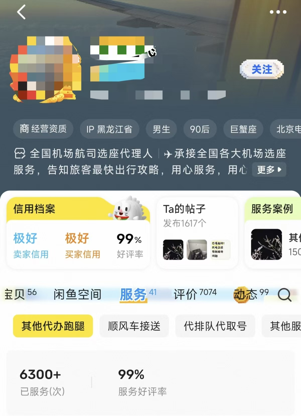 所以,我们可以大胆猜测,只要卖家能够与机场的人取得联系,或者干脆自己就是披着马甲的机场地服,选座这门生意就能在闲鱼偷偷干下去,也就不足为奇了。