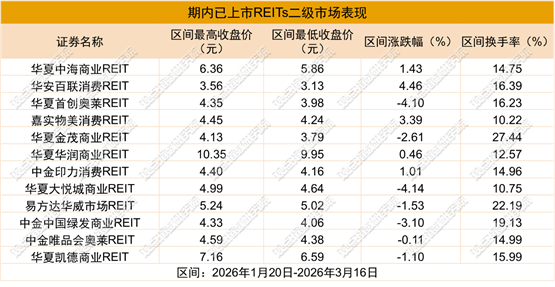 二级市场表现上,12只上市样本REITs中,5 只录得上涨、7 只呈现下跌,呈现出明显的涨跌分化趋势。