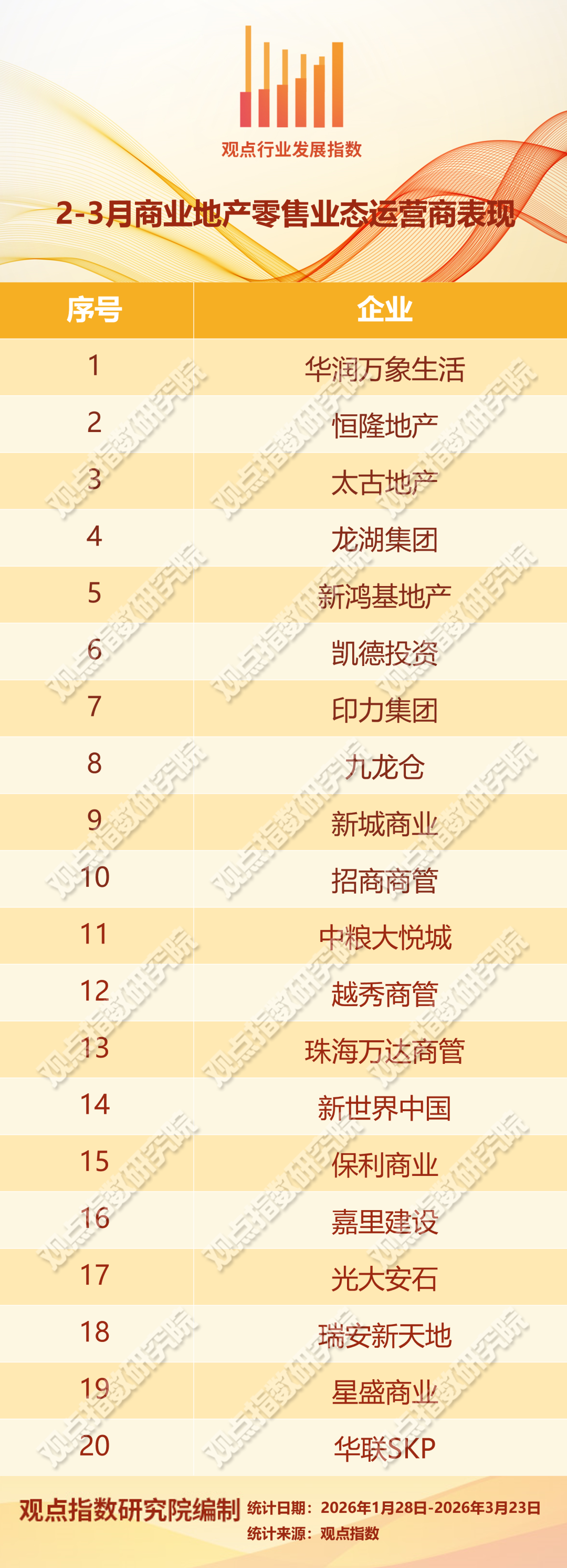 摘要:在行业复苏的背景下,商业地产企业纷纷加速战略调整,整体呈现“高端化布局、轻资产下沉”的双重趋势。(报告期:2026.01.28-2026.03.23)