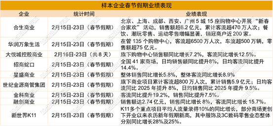 报告期内,受益于春节假期消费红利,观点指数观察下的大部分样本企业均实现了客流与销售额的双增长,线下人气显著回流。