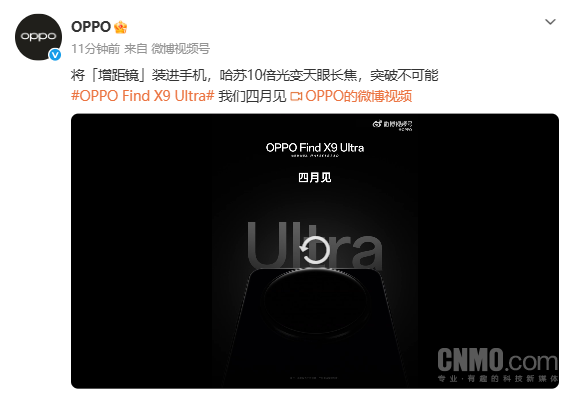 【CNMO科技消息】3月24日,OPPO官方宣布,Find X9 Ultra将“增距镜”装进了手机,配备哈苏10倍光变天眼长焦。有博主称,这是行业内首款采用原生10倍光学变焦的影像旗舰,无需外接配件即可实现超远距离清晰拍摄。