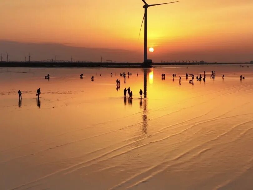 网红海滩:陈家港网红海滩位于江苏盐城市响水县陈家港镇,退潮后滩涂形成“天空之镜”,可远眺开山岛、打卡巨型风电风车群;因赶海视频走红,是江浙沪热门赶海+日出日落拍照地。