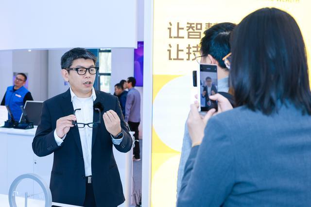 “橙果铺子”的中心展台,可实时显示语音字幕的讯飞AI智能眼镜吸引着记者的注意。这款被称作“全球最轻双目单色显示多模态智能眼镜”的产品,重量在40克左右。中文讲话内容实时转化为英文字幕并显示在镜片上。