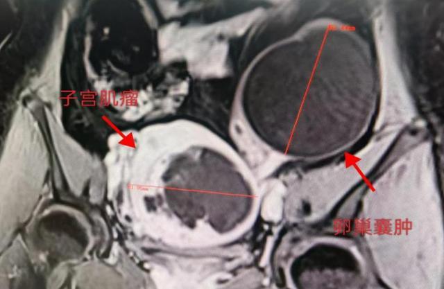 36岁的肖女士(化名),体检发现子宫肌瘤+右侧卵巢囊腺瘤,伴尿频、痛经、下腹部及肛门坠胀,她慕名来到湖南省第二人民(省脑科医院)妇产科就诊,陈艳辉副主任医师为其进行妇科检查发现:子宫增大如孕12周,左侧附件区可触及8cm囊性包块。