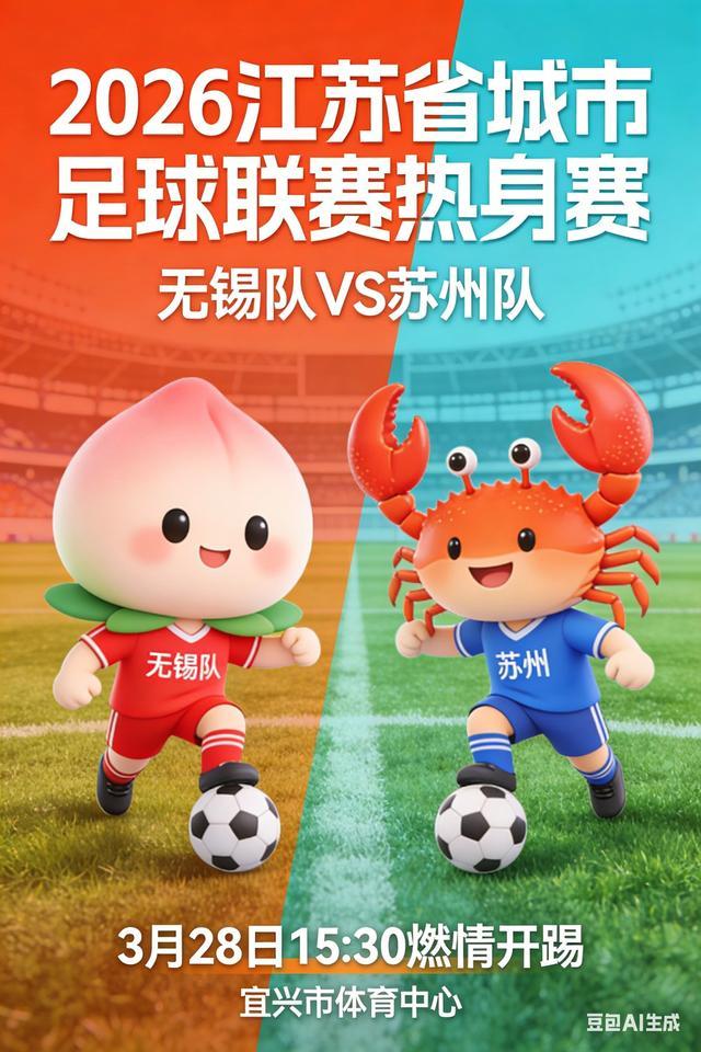 据无锡体育消息,3月28日15:30,2026江苏省城市足球联赛无锡队VS苏州队的热身赛,即将燃情开赛。