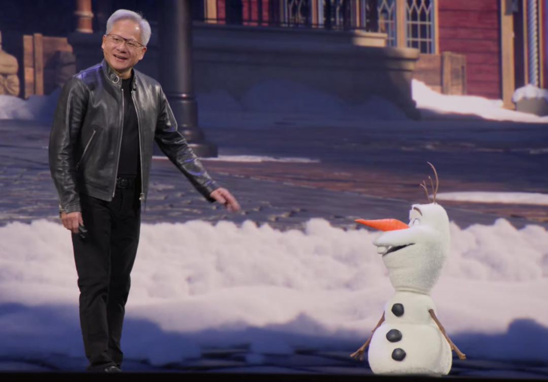 对,就是那个来自迪士尼电影《冰雪奇缘》的雪人Olaf(中文名雪宝),刚和黄仁勋在台上互动的那个IP化的机器人。