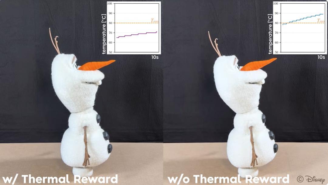 同理,AI为了拿到满分,它会在走路时尽可能让自己轻轻地着地。所以你现在看到的雪宝机器人,走起路来就像一个轻盈的雪人。