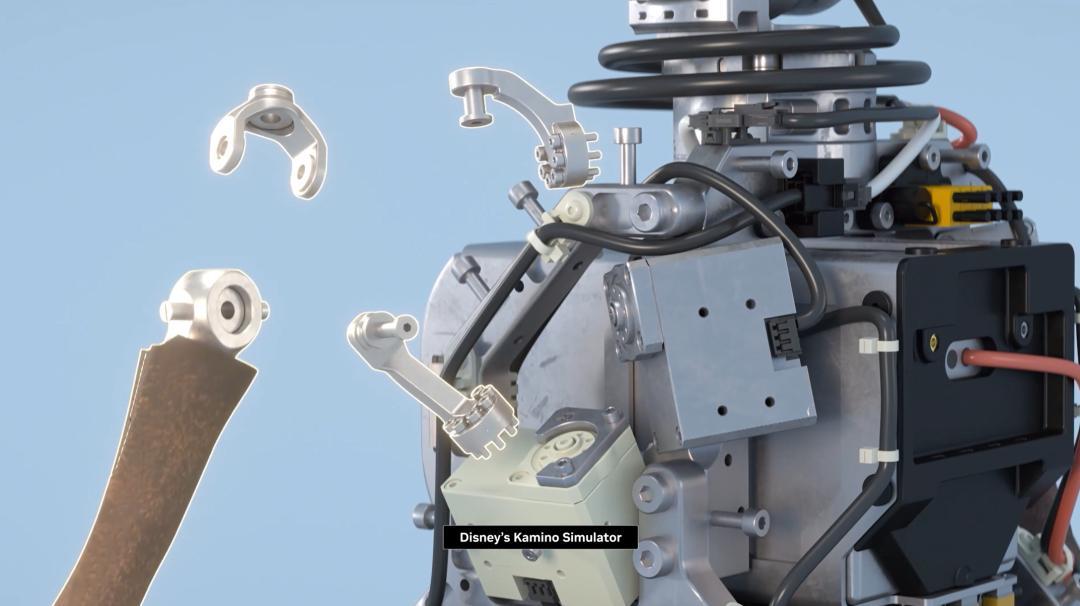 为了防止雪宝机器人学习走路时在现实环境中摔坏,迪士尼研发团队在Newton仿真框架的基础上自主开发了一个叫做Kamino的模拟器,用来训练像雪宝一样需要在复杂环境下走路的机器人。