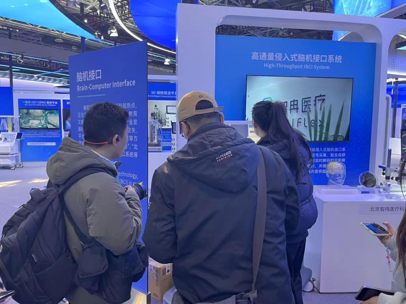 据了解,脑机接口分为非侵入式、半侵入式、侵入式三大技术路线。在中关村常设展展区,北青报记者看到,北京智冉医疗科技有限公司的千通道侵入式柔性脑机接口系统正在展示。