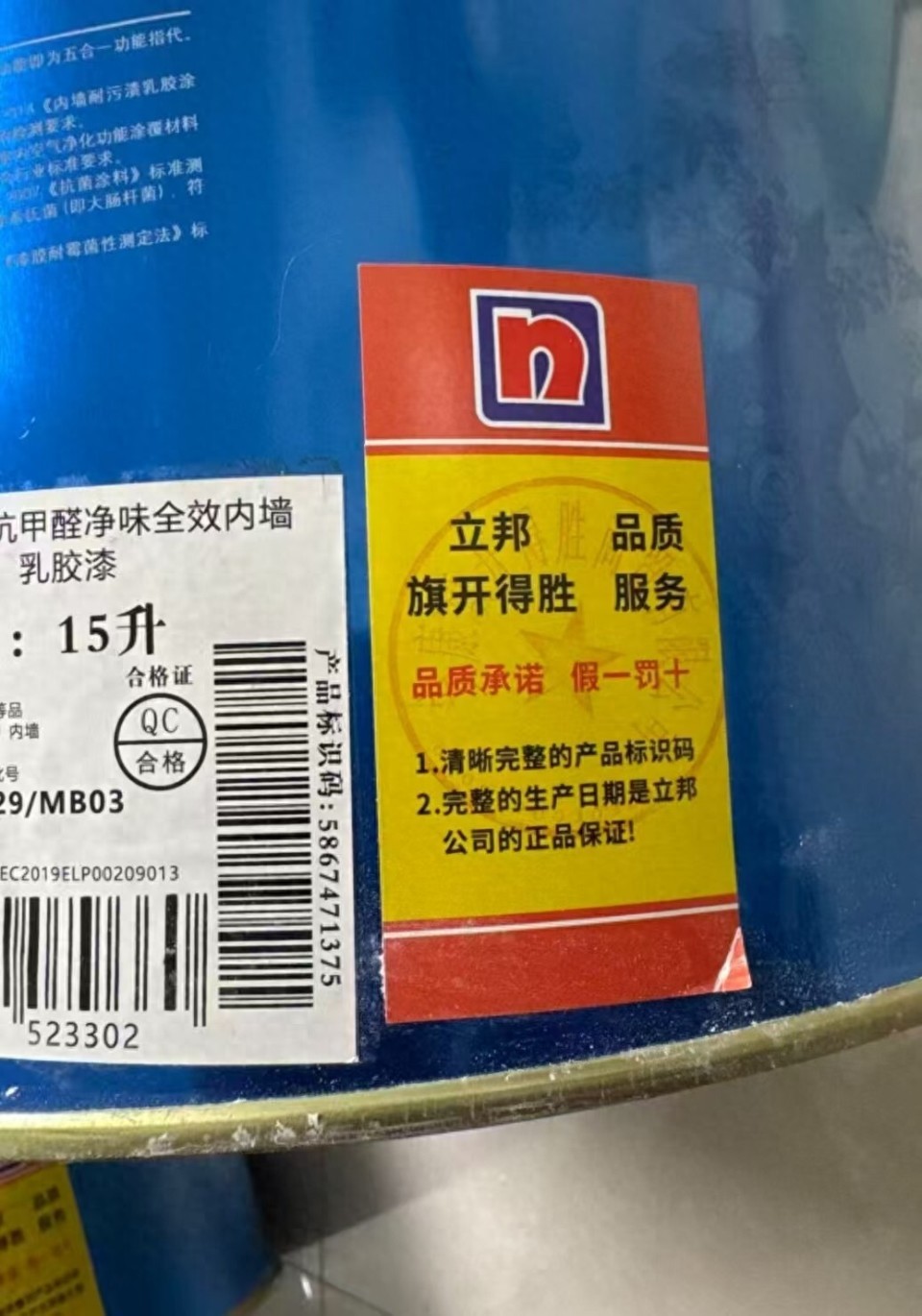 据投诉者杜先生提供的一份《安康市市场监督管理局投诉调解书》显示,2026年3月13 日,安康高新区天贸城9区“立邦专卖”商家向其销售的立邦牌油漆产品标识码与生产日期批号不符。3月24日,经立邦涂料(中国)有限公司委托的工作人员张某某现场鉴定,1桶油漆产品为立邦涂料(中国)有限公司出品,该产品实际生产日期为2022年5月27日(保质期36个月),但生产日期被人为篡改成2024年1月29日。