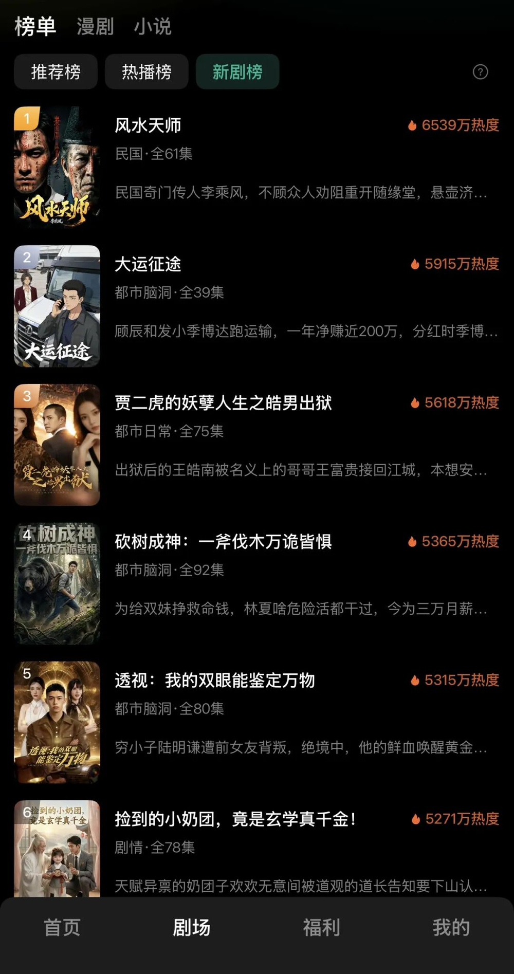 从滑动推荐的首页,到分列榜单、漫剧、小说等类目的剧场页,再到延续“看短剧赚金币”玩法的福利页,红果漫剧的基本框架几乎和红果短剧如出一辙,只是少了承载电商场景的商城页。