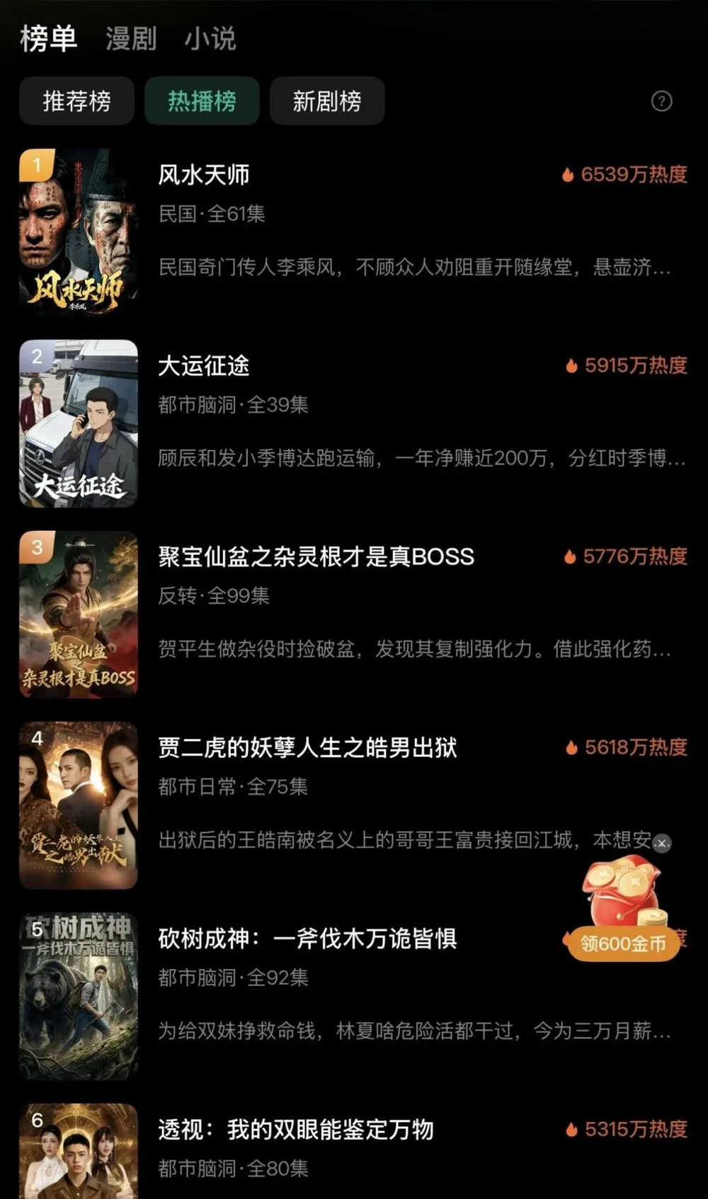 其次,火龙漫剧的排行榜设计也很特别。端内榜单分为热搜榜和热播千榜,前者顾名思义,是综合内容搜索次数和播放次数计算排名。