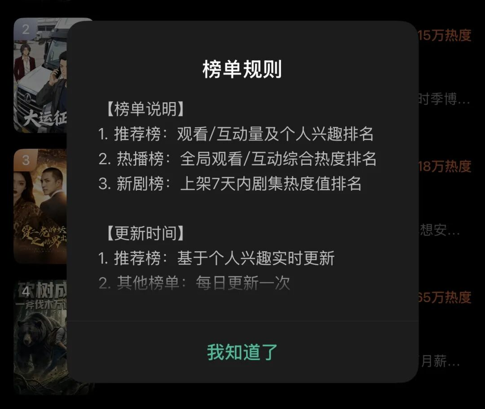 简单来说,红果漫剧的榜单其实就是红果短剧榜单中的“漫剧榜”这一子分类,其他涉及到预约、收藏、热搜等用户行为的榜单都被隐去。