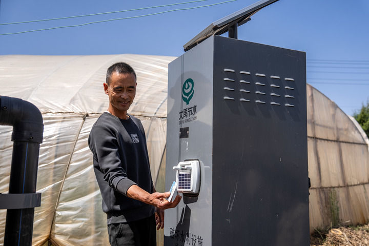 围绕现代化灌区建设,晋宁区实施主干管网和田间“毛细血管”工程建设,推动供水管网从水源延伸到田间地头。晋宁区河(湖)长制办公室主任高云坤说,项目区现已实现部分区域24小时供水,过去靠抽水机取水的方式正逐步被智能取水替代。农户刷卡或通过手机终端即可控制灌溉,用水更稳定、更精准,也更省心。