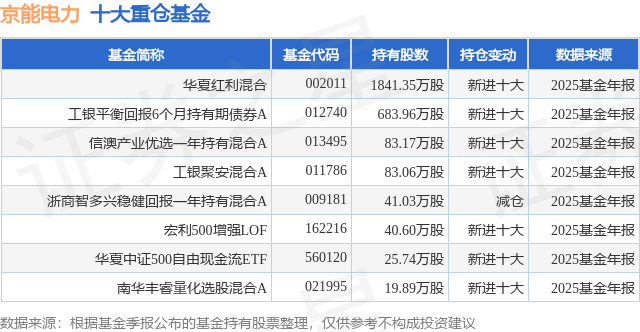 重仓京能电力的公募基金请见下表:
