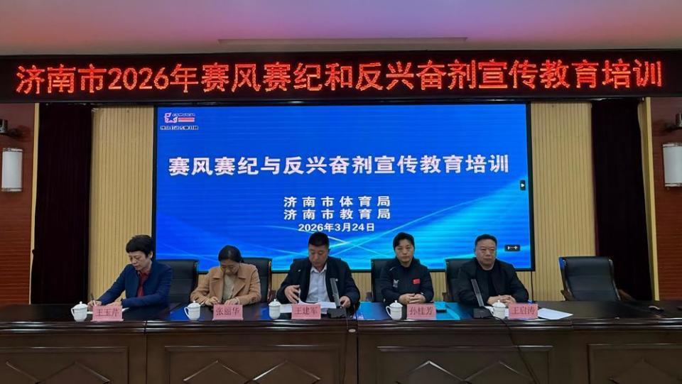 3月24日,济南市体育局联合济南市教育局开展2026年赛风赛纪和反兴奋剂宣传教育培训,为26届省运会备战参赛筑牢纪律防线。