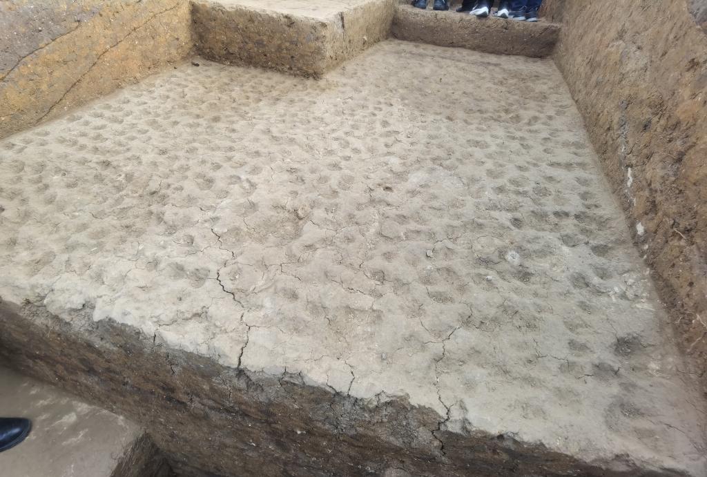“小台”发掘地点内部分夯面上夯窝密布。新华社记者王凯 摄