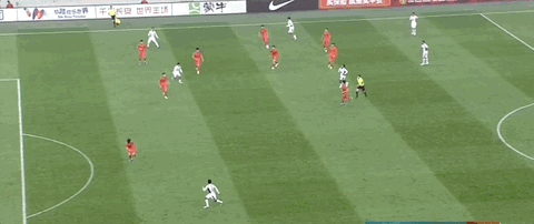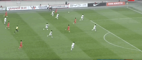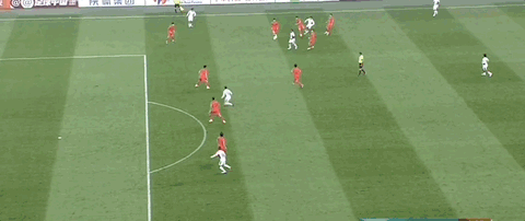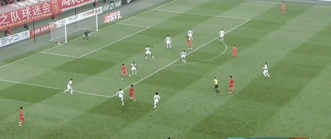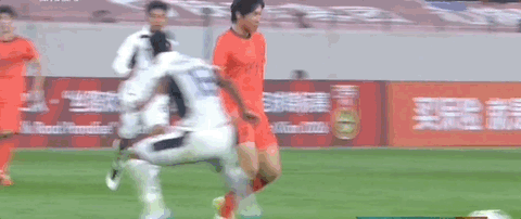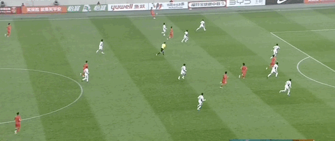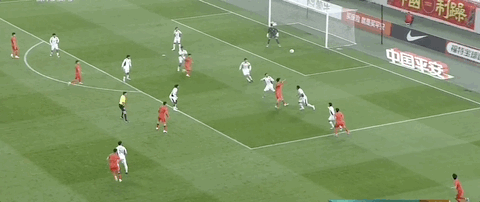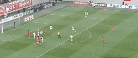 贺一然接队友传中,头球攻门顶偏