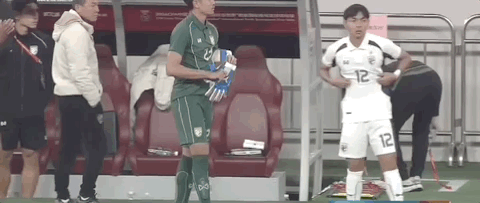 第68分钟,泰国U23门将扑救时受伤,随后被替补门将换下