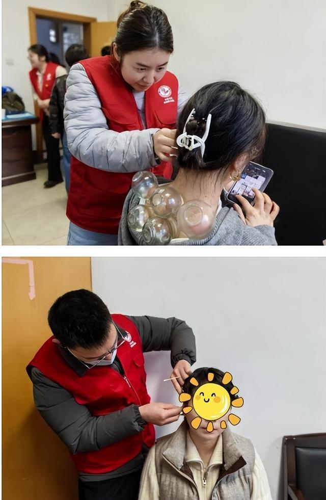 在中医适宜技术体验区,耳穴压豆、拔罐、针灸等特色服务备受干部职工青睐。医护人员依据“辨证施治”原则,针对干部职工常见的颈肩腰腿痛、睡眠障碍、亚健康等问题,精准取穴、规范操作,同时详细讲解日常舒缓调理技巧,让大家在体验中感受中医药文化的独特魅力,有效缓解了工作带来的身体疲劳。