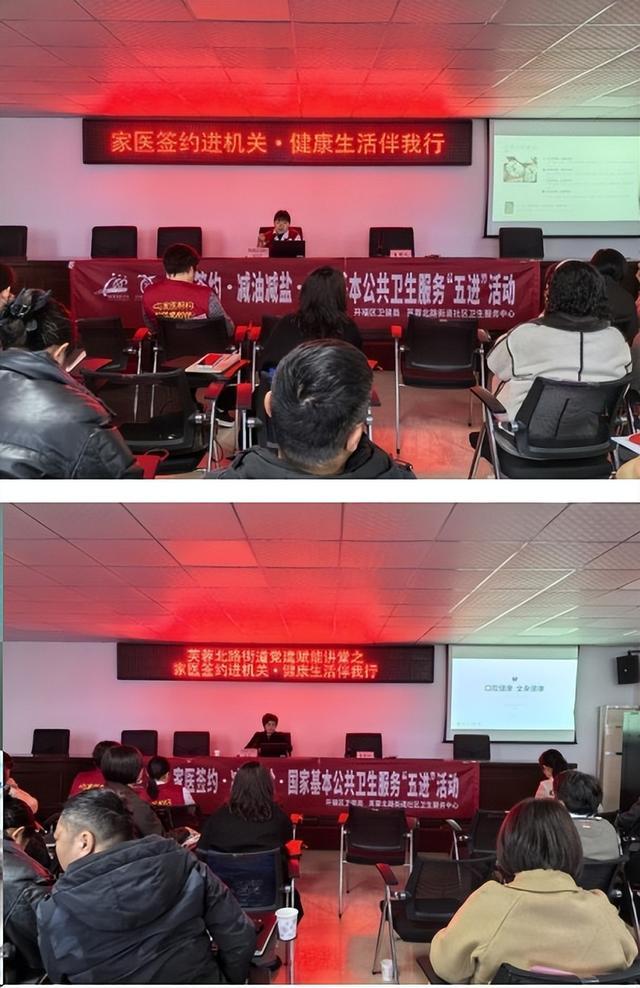 为深入落实国家基本公共卫生服务,切实关心关爱干部职工身心健康,推进“三减三健”全民健康生活方式行动,营造健康活力机关氛围,3月25日下午,长沙市开福区芙蓉北路街道社区卫生服务中心党支部联合芙蓉北路街道办事处卫健办、基层党办,在芙蓉北路街道办事处会议室开展“为健康加分,为活力添彩——党建赋能讲堂之家医签约进机关·健康生活伴我行”专项活动。街道机关党员干部、各社区两委成员近100人参与本次活动。