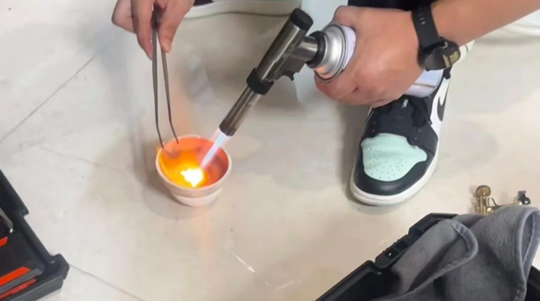 这里劝大家不要学哈,一部手机的黄金含量也就30mg左右,费老大劲提取不如捡矿泉水瓶更实在...